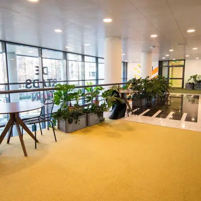 De locatie heeft ook diverse lokale voorzieningen binnen handbereik, zoals eetgelegenheden en winkels. Dit maakt lunchpauzes en na-werkactiviteiten zowel praktisch als aangenaam. Of je nu een snelle hap nodig hebt of op zoek bent naar een plek om met collega's te ontspannen, de omgeving biedt een breed scala aan mogelijkheden.